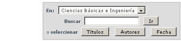 Se puede limitar la búsqueda a una determinada comunidad seleccionando la flecha a la derecha del buscador. Si se desea que la búsqueda incluya todo RepHipUNR, hay que dejar la caja de búsqueda en la posición por defecto. Luego seleccione el campo para buscar en la columna de la izquierda e ingrese la palabra o frase que desea buscar el la columna de la derecha. Ud. puede utilizar operadores boleanos para combinar las búsquedas seleccionando una de las opciones a la izquierda.
